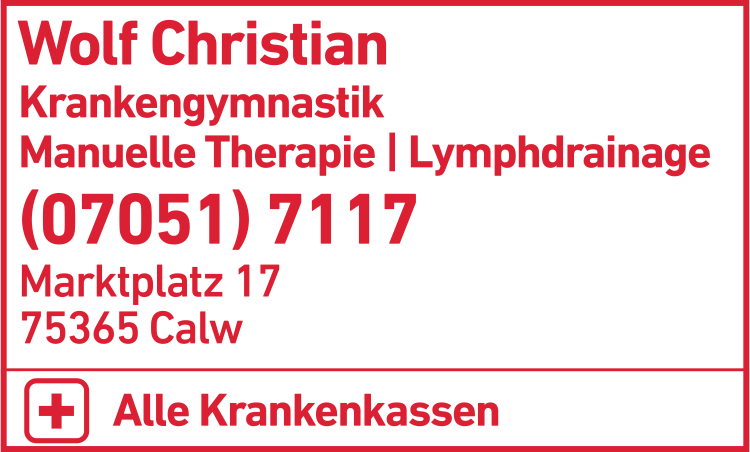 Wolf Christian Praxis für Krankengymnastik 07051 71 17 Calw Marktplatz 17 75365 5 5 1