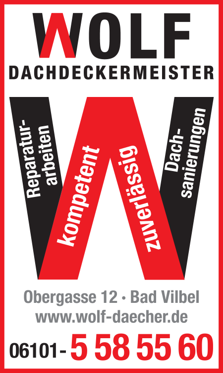 Die Adresse von Wolf Sascha Dachdeckermeister lautet: Obergasse 12, 61118 Bad Vilbel