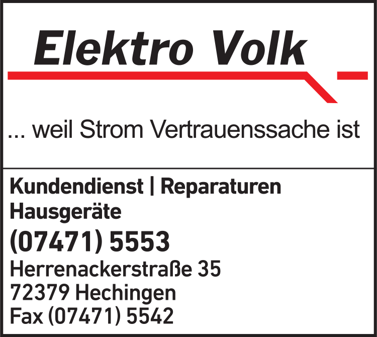 Die Adresse von Wolfgang Volk lautet: Herrenackerstr. 35, 72379 Hechingen