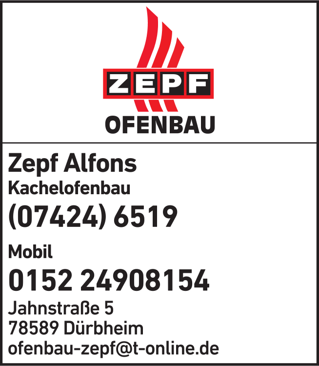 Die Adresse von Zepf Alfons u. Rita Kachelofenbau lautet: Jahnstr. 5, 78589 Dürbheim