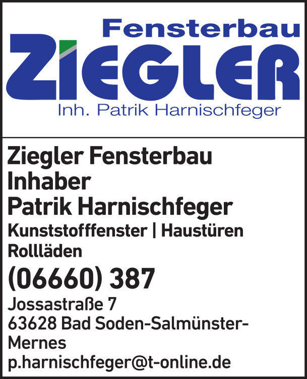 Wie lautet die Adresse von Ziegler Alfons Inh. Patrik Harnischfeger Fenster?