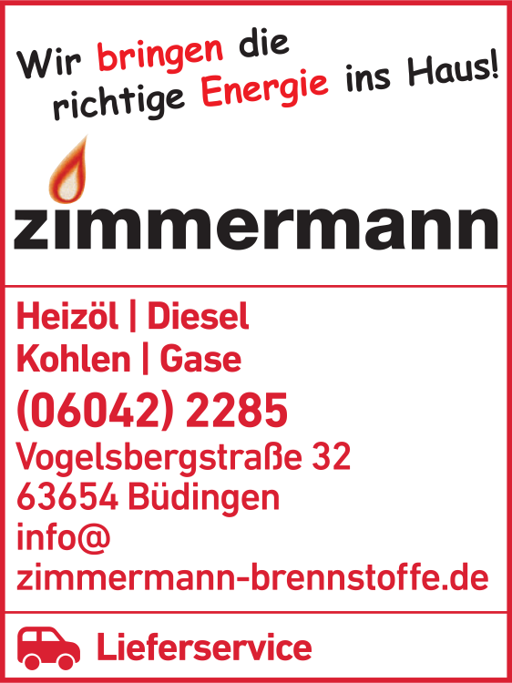Die Adresse von Zimmermann Heizölhandel lautet: Vogelsbergstr. 32, 63654 Büdingen