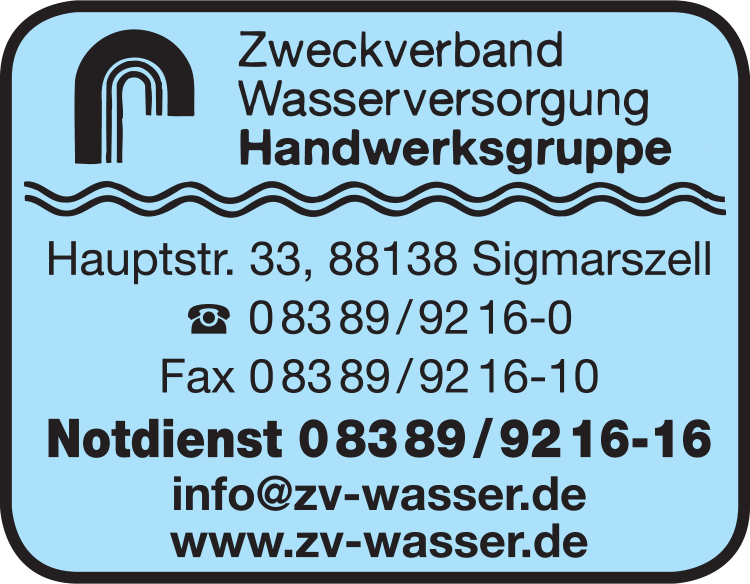 Die Adresse von Zweckverband Wasserversorgung lautet: Hauptstr. 33, 88138 Sigmarszell