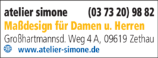 atelier simone 037320 98 82 Zethau Großhartmannsdorfer Weg 4 A 09619 Zethau