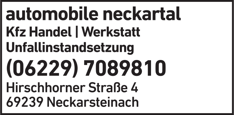 Die Adresse von automobile neckartal lautet: Hirschhorner Str. 4, 69239 Neckarsteinach