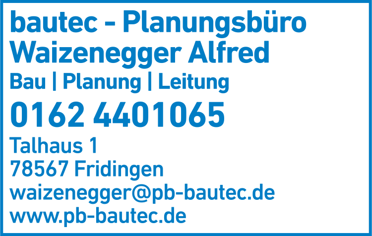 bautec Planungsbüro Inh. Alfred Waizenegger 0162 4 40 10 65 Fridingen Talhaus 1 78567
