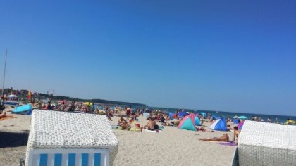 Der Strand in Warnemünde an der Ostsee ist 5 Kilometer lang und teils 100 Meter breit. Er lädt mit einem gepflegten Sandstrand zum Ausruhen und Sonnenbaden ein.