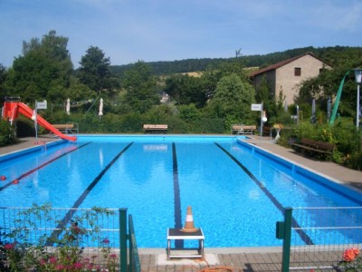 Hier gibt es ein Schwimmbecken unterteilt in einen Schwimmer- und Nichtschwimmerbereich mit einer Wasserrutschbahn. Das erst neu für die Kinder angelegte Planschbecken bietet viel Platz zum Spielen.