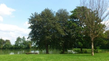 Um den See herum gibt es grüne Liegewiesen zum Sonnenbaden und schattige Plätze unter einem der vielen Bäume.