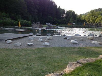 Das Naturbad bietet ein riesiges Schwimmerbecken, ein Aktionsbecken mit Sprungbereich, einen Sandstrandbereich sowie einen Bereich für die kleinen Badegäste. Zum Nachmittag hin wird das Freibad etwas schattiger, wer also die Sonne genießen will, muss früher kommen.