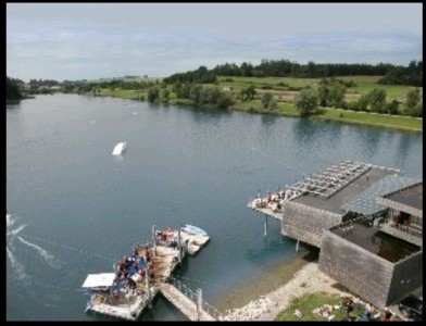Am Wasserskipark kann man auf der 860 Meter langen Umlaufseilbahn Wakeboard und Wasserski fahren.