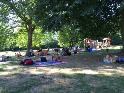 Auf der großen Liegewiese kann man nicht nur Sonnen und Relaxen, sondern auch Beachvolleyball und Minigolf spielen.