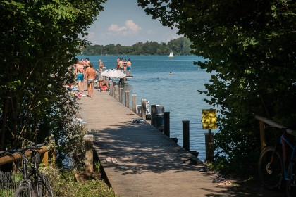 Der Badeplatz ist in einem Landschaftsschutzgebiet gelegen. Hier finden auch Slackliner, Frisbee- und Federballspieler genügend Platz zum aktiv werden.