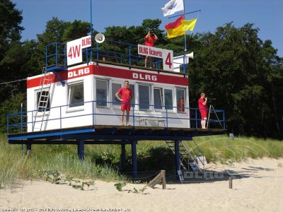 Der breite, fast steinfreie Sandstrand befindet sich gegenüber des Achterwassers und bietet unter anderem ein Feriencamp, wo man sich Fahrräder ausleihen kann. Außerdem gibt es ein Restaurant und Möglichkeiten für Übernachtungen. Nicht unweit vom Strand befindet sich die Minigolfanlage Ückeritz.