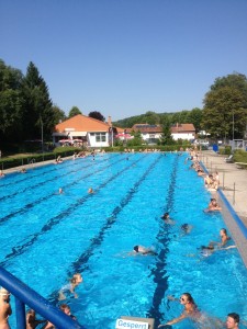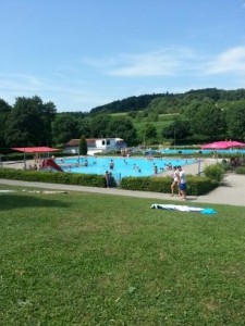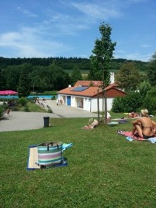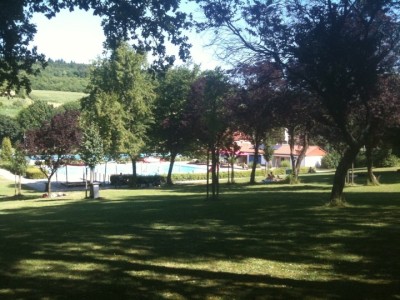 Hier gibt es ein Sportbecken für die Schwimmer und ein Nichtschwimmerbecken. Auf der Liegewiese kann man nach dem Schwimmen in der Sonne liegen und sich erholen. Durch die vielen Bäume gibt es hier aber auch ausreichend schattige Plätze.