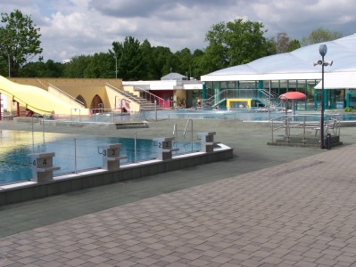 Im Außenbereich gibt es ein Schwimmbecken mit sechs Schwimmbahnen, eine 86 Meter lange Röhrenrutsche, einen Whirlpool und ein Vierjahreszeiten-Becken mit Strömungskanal.
