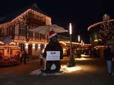 Tausende kleine Lichter liegen glitzernd auf dem Steiff Museum und den umliegenden Buden, die bis zum Postberg reichen, der Richtung Giengens Stadtmitte führt. Ein großer geschmückter Christbaum steht mitten auf dem Vorplatz des Steiff Museums. Ein angenehmer Duft gebrannter Mandeln und Zimt liegt in der Luft und liebliche Adventsmusik erklingt aus den Lautsprechern und stimmt die Besucher auf eine besinnliche Weihnachtszeit ein.