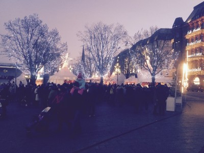 Weihnachtsmarkt mit Blick auf die Alstertanne